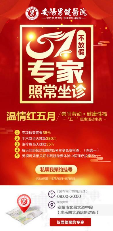 每天網絡預約前5名享受免費檢查(性功能/前列腺/生殖整形/泌尿感染四套38元專項檢查可任選其一)